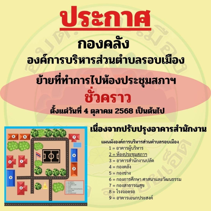 ✅️ย้ายสำนักงานไปที่ห้องประชุมสภาฯ ชั่วคราว เนื่องจากปรับปรุงอาคารสำนักงาน