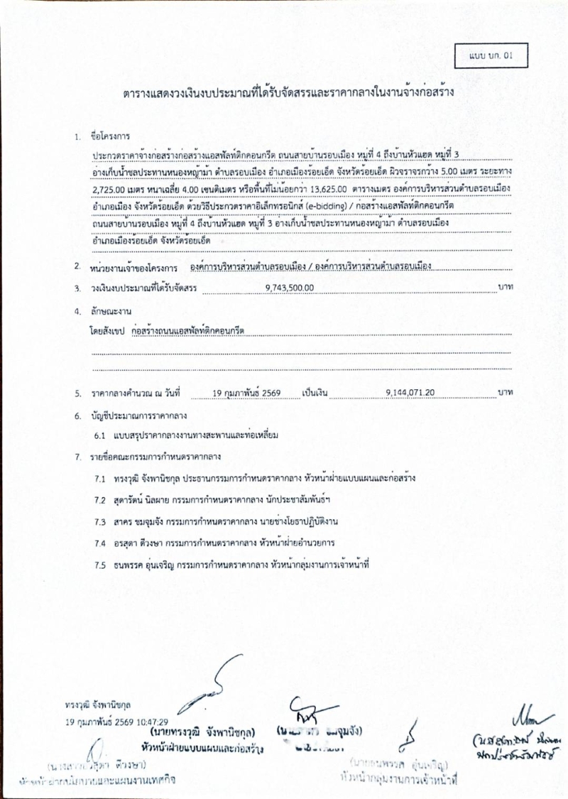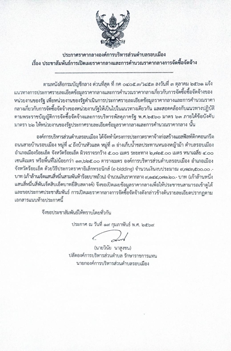 หัวข้อ :: ประกาศราคากลาง ตารางแสดงวงเงินงบประมาณที่ได้รับจัดสรรและราคากลางในงานจ้างก่อสร้าง โครงการประกวดราคาจ้างก่อสร้างแอสฟัลท์ติกคอนกรีต ถนนสายบ้านรอบเมือง หมู่ที่ 4 ถึงบ้านหัวแฮด หมู่ที่ 3 อ่างเก็บน้ำชลประทานหนองหญ้าม้า ตำบลรอบเมือง อำเภอเมือง จังหวัดร้อยเอ็ด